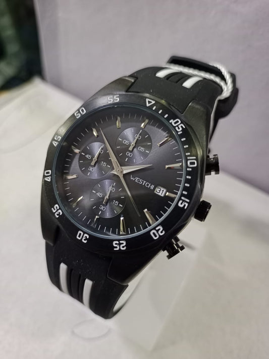 Black Westchi Chronograph Watch With Silicone Strap Providing Durable Quality Comfortable Fit